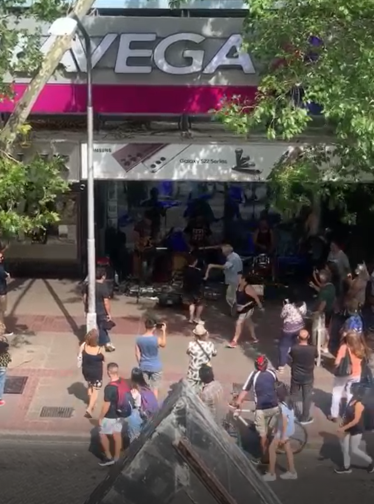 En plena calle San Martín de la capital de Mendoza, dos adultos fueron grabados bailando al compás del show que estaba brindando una de las bandas callejeras más conocidas de la provincia, "La Banda Viajera". El hecho fue compartido por la usuaria de Instagram, Sofía Mora, que se encargó de hacerlos viral en la red social.