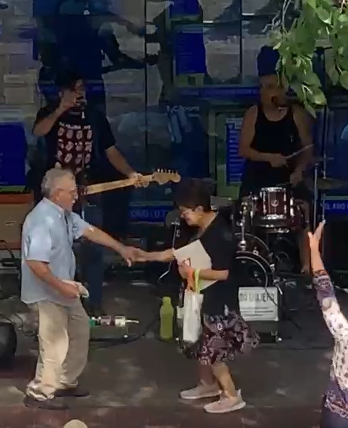 La pareja de mayores y los artistas callejeros fueron verdaderos artífices de un momento poco común en las calles del microcentro de la Ciudad de Mendoza. Mientras la banda tocaba sus mejores temas, los transeúntes despegaron sus pasos de baile, y juntos le sacaron una sonrisa a todos los presentes.