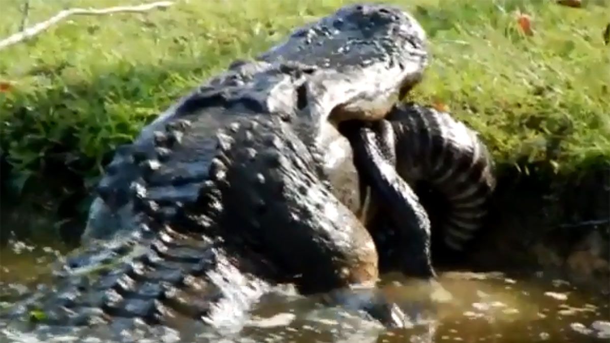 Las imágenes fueron dadas a conocer por un hombre identificado como Taylor Soper, en su perfil de Twitter, el 30 de septiembre. El video muestra la salvaje imagen del gigantesco reptil que aparece en la orilla de un estanque y devora sin piedad a otro de su misma especie. Luego queda flotando tranquilamente en las aguas.