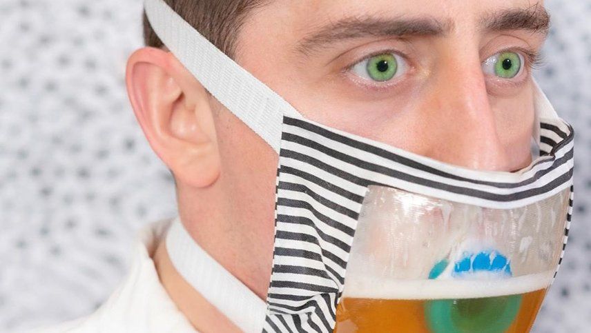Entre esas opciones se encuentra un barbijo muy particular porque cuenta con medio litro de alguna bebida. Matty Benedetto ofrece una opción innovadora, una mascarilla que tiene contiene un dispensador para casi medio litro de cerveza que puedes beber sin sacarse el cubreboca.